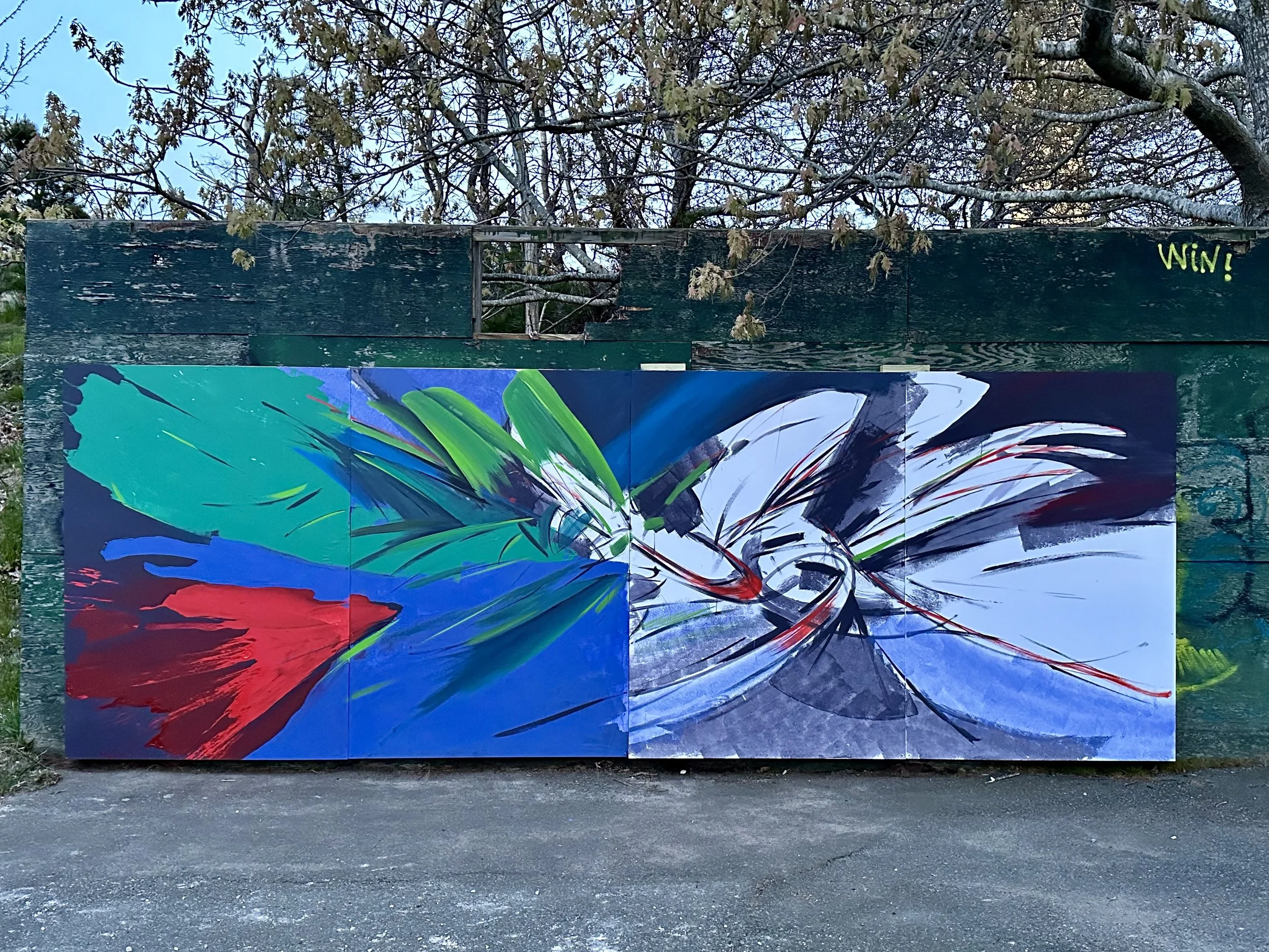 The vision for this project is a collaborative effort between Sam Tager (executive director of Provincetown Public Art Foundation) and me. The vision for temporary public murals on the Cape has been developing in recent years. The Trap shed program on Mc Millan pier in Provincetown, which offers studio spaces for artists on the pier, serve as a perfect canvas to display temporary installations on their outdoor walls. Measuring 8x20 ft. seven artists were selected to participate in this project resulting in a creative display on Mc Millan pier.